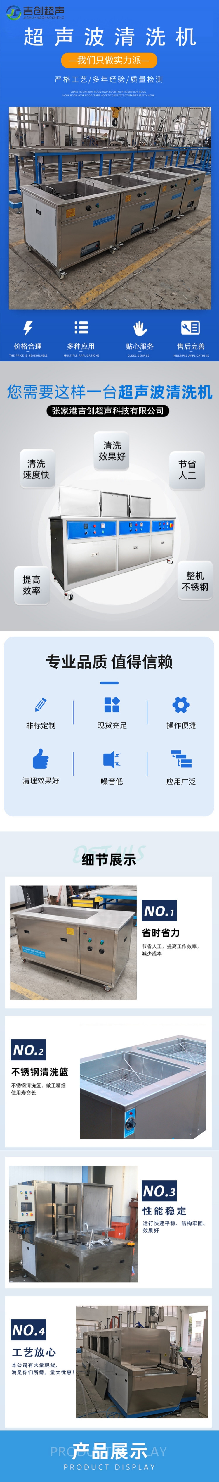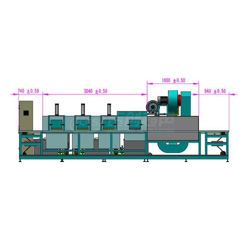 RZBJ-B步进式超声清洗烘干机适用于零件的清洗及烘干。 该设备有1个喷淋清洗室、1个喷淋漂洗室、1个通过热风烘干室,共3个工位。 其工作原理是人工将欲清洗工件放置在清洗框内然后放置在清洗机输送带上,然后按照一定的工艺程序喷淋清洗、喷淋漂洗、烘干、最后卸料。设备外形美观,结构合理,使用寿命长,是理想的清洗设备。 本设备具有如下特点: 1. 增设储液槽、清洗液循环过滤系统,保证清洁度; 2 .根据工件清洁度要求,任意调节清洗时间; 一、 主要工艺流程 人工装框上料→空位隔水→喷淋清洗(喷淋泵+电加热温控+循环过滤)→空位隔水→喷淋漂洗(喷淋泵+电加热温控)→隧道式热风烘干(热风循环+空气加热)→人工下料